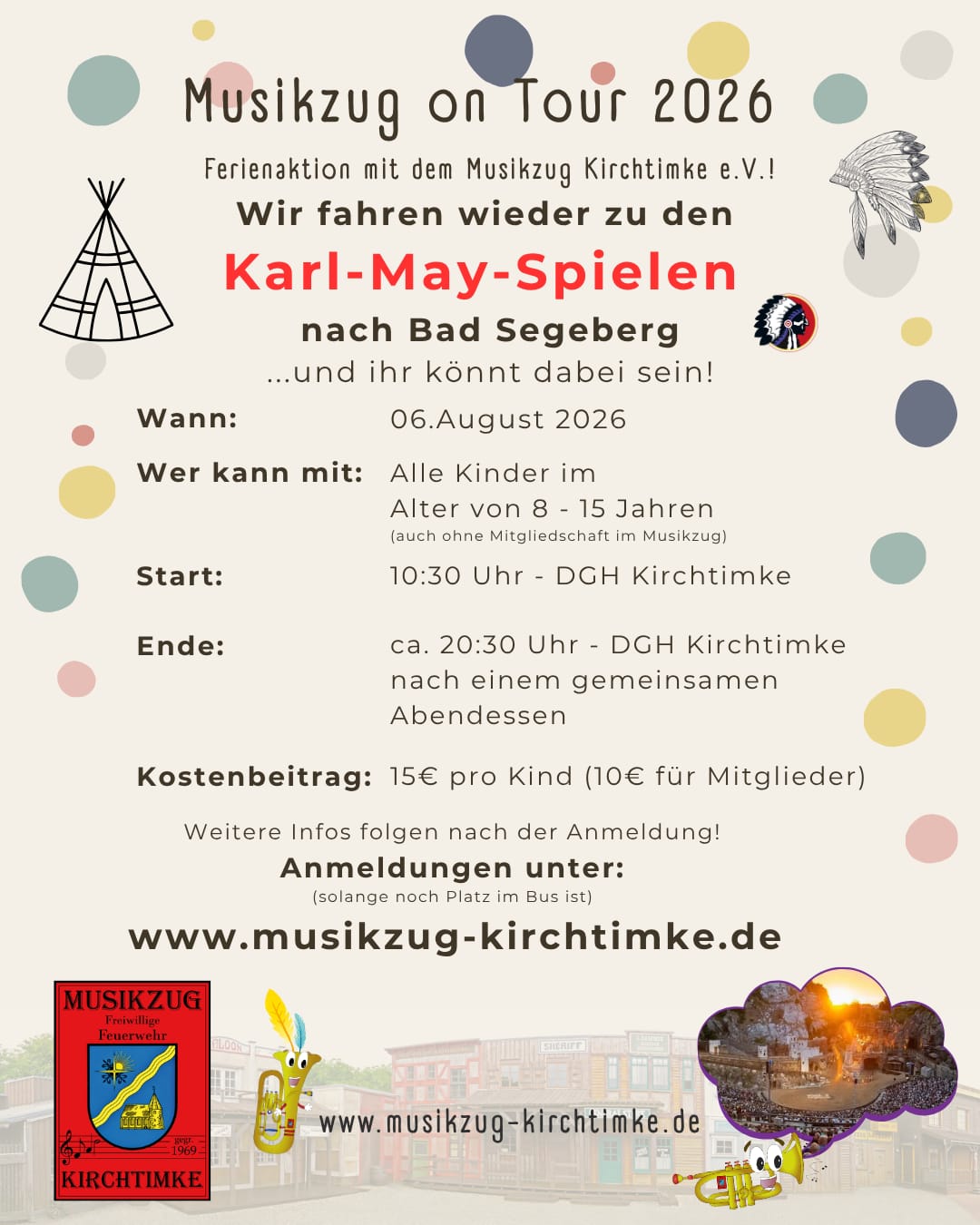 Wir fahren wieder zu den Karl May Spielen nach Bad Segeberg. Nach wir im letzten Jahr eine so erfolgreiche Tour hatten, soll es in diesem Jahr wieder losgehen.